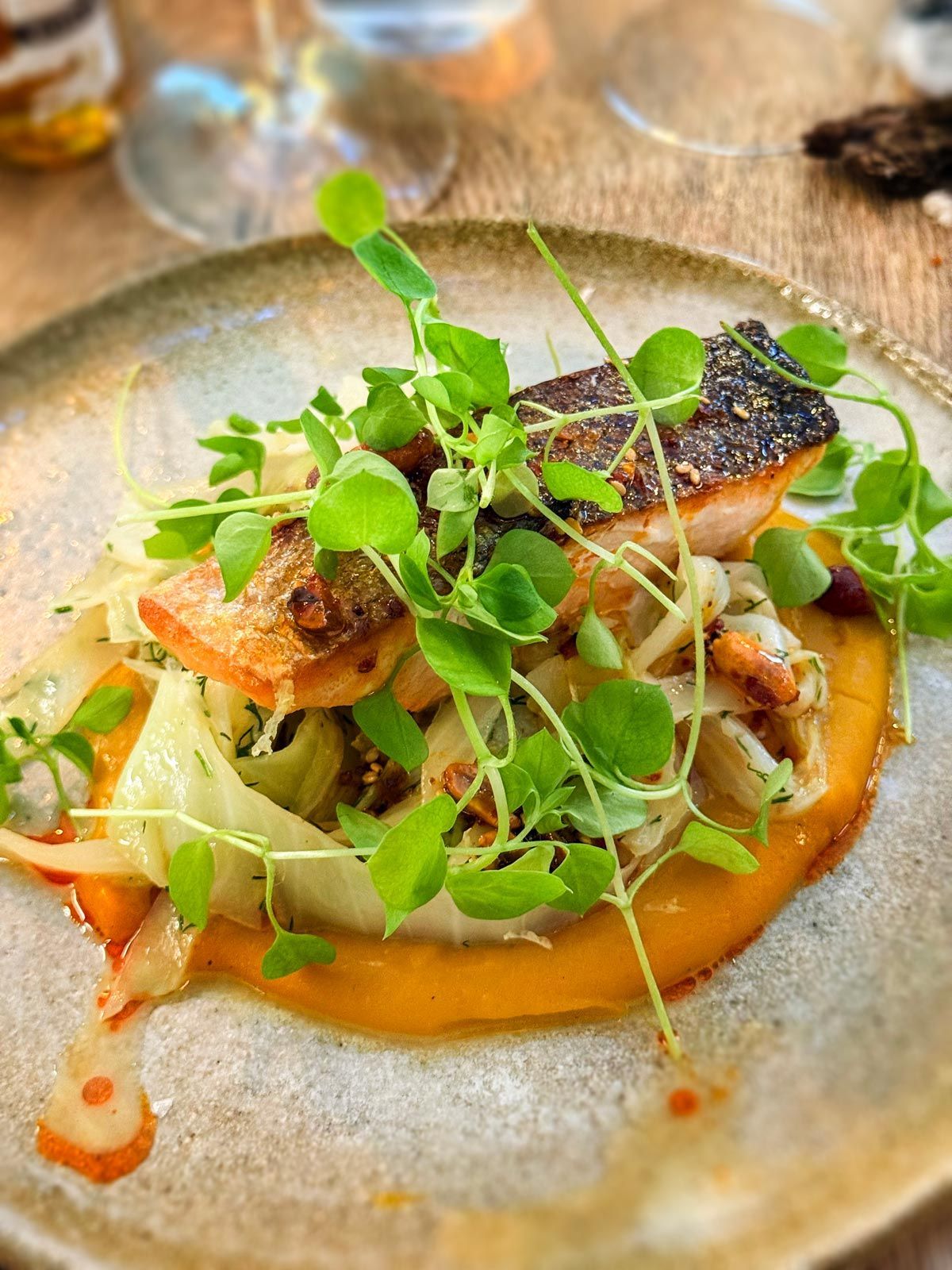 À l’initiative de Lauren Cusack et Germain Millet de la maison Bord Bia, partenaire de l’académie, nous avons été invités à partager un repas de découvertes gustatives dans l’esprit de Noël. L’agence de développement de l’agroalimentaire irlandais, c’est son autre nom, avait ouvert les portes du restaurant Salicorne à Paris de la talentueuse et discrète cheffe irlandaise Carol Pender, aux journalistes.
