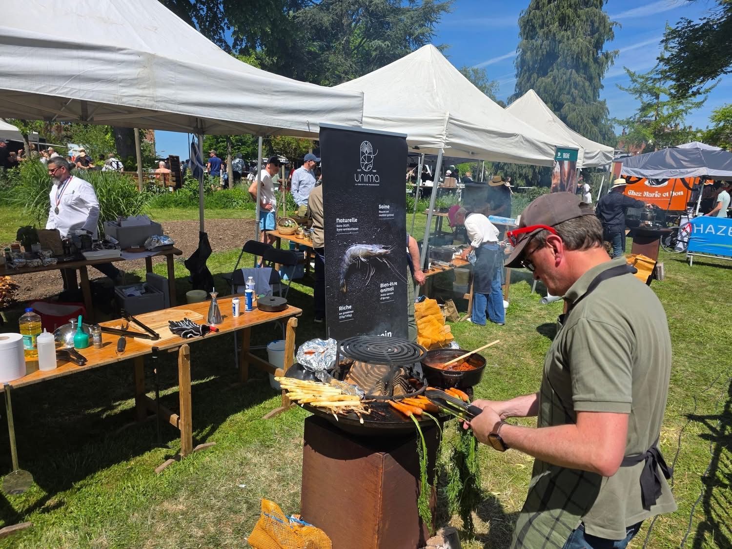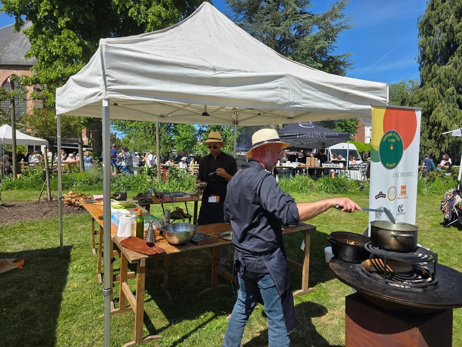 Un des temps forts du week-end : une masterclass menée par Jonathan Lutun, gagnant de l’édition précédente, accompagné d’Eric membre de l’ANC. Ensemble, ils ont démontré que le brasero est un véritable outil gastronomique, capable de sublimer viandes, poissons, légumes et fruits, le tout sous le thème engagé de l’anti-gaspillage, en partenariat avec la Banque Alimentaire et Beef Projet .