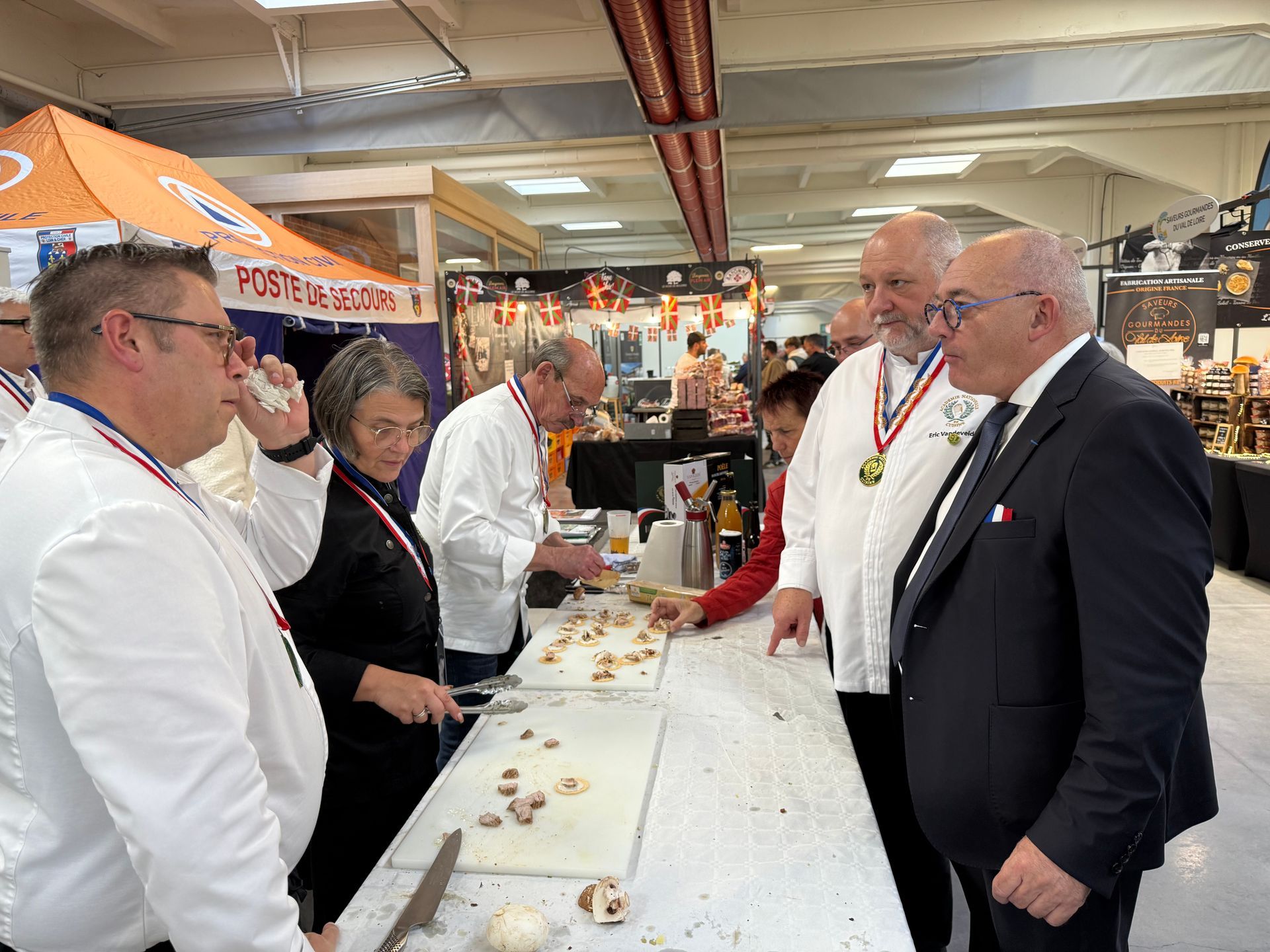 Les 25 et 26 octobre derniers, les épicuriens avaient rendez-vous à Romorantin-Lanthenay à la Fabrique Normant pour deux journées organisées en main de maître par Bruno Frapier, autour d’un marché de producteurs, artisans, vignerons et de nombreux concours pour professionnels, particuliers et enfants. Si les plus célèbres d’entre eux que sont, le Championnat du Monde du Lièvre à la Royale (fondé par Thomas Boullaut) qui a vu un chef japonais Yoichi Nakaaki remporter le titre, le trophée du concours chocolat Jean-Claude Léchaudé a lui été remporté après neuf heures d’épreuves par le pâtissier Jules Dameron. Ce concours est géré par le Meilleur Ouvrier de France Serge Granger avec le soutien de notre partenaire Cacao-Barry. Les arts boulangers et la boucherie étaient aussi valorisés, comme la transmission des savoirs entre jeunes et anciens associés sur de la pâtisserie. Cette édition a marqué également le retour d’une belle présence de notre association avec une quinzaine de membres sur les deux jours pour animer un stand de dégustations de mises en valeur du patrimoine gourmand de la Sologne avec plus de 5.000 bouchées confectionnées devant les visiteurs et pour leur plus grand plaisir de gourmandise. Plusieurs délégations étaient donc représentées pour partager de conviviaux moments confirmant l’objectif premier de transmettre notre passion pour le bon pour tous. Notre président Éric Vandevelde fut invité à participer à un plateau télé en direct pour présenter l’ANC et ses valeurs. Sur le stand, un espace était réservé à « La femme du Chef » qui présentait son cahier de coloriage (des gaffes, des plats ratés, des scènes absurdes en cuisine… à personnaliser. Le tout saupoudré d’autodérision et de bonne humeur) et animait un atelier pour les enfants. À noter la présence le samedi et l’intronisation du chef Anh Quôc Lê, venu tout spécialement de Lorraine et en famille, pour recevoir son diplôme et médaille de membre actif. Bienvenue à lui !